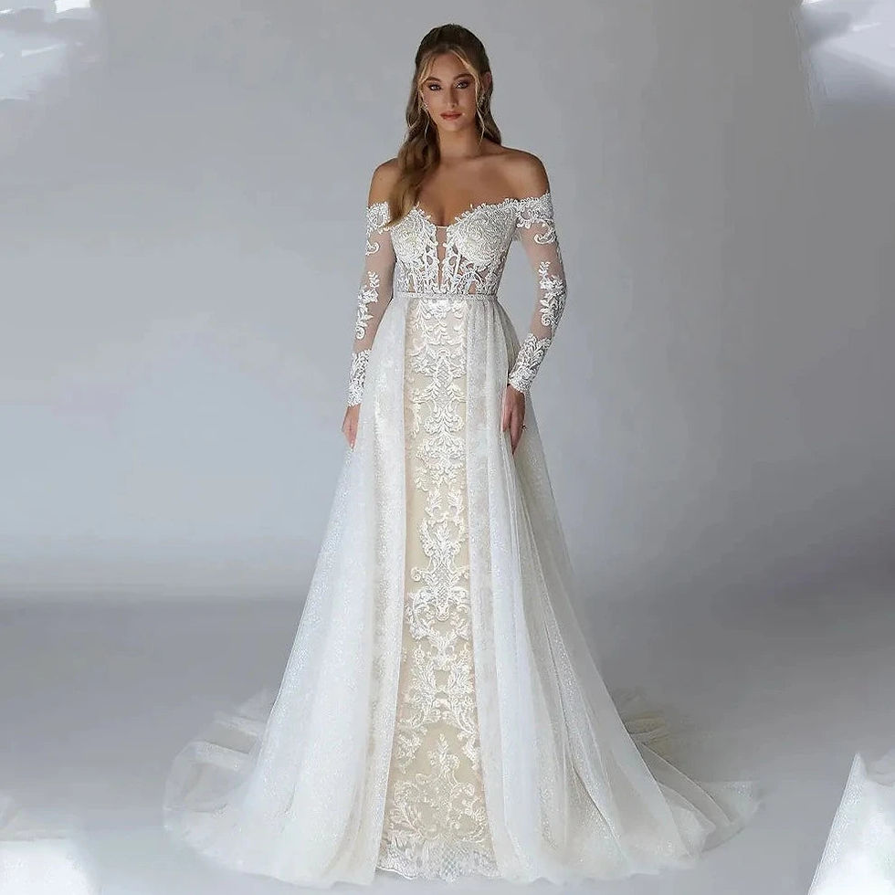 Luxury Mermaid Wedding Dress with Detachable Train and Long Sleeve Jacket | Mode