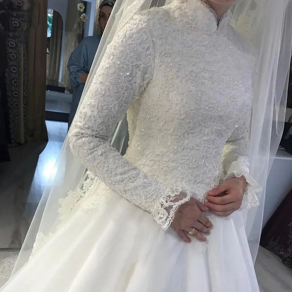 High-Neck Beaded Muslim Wedding Dress